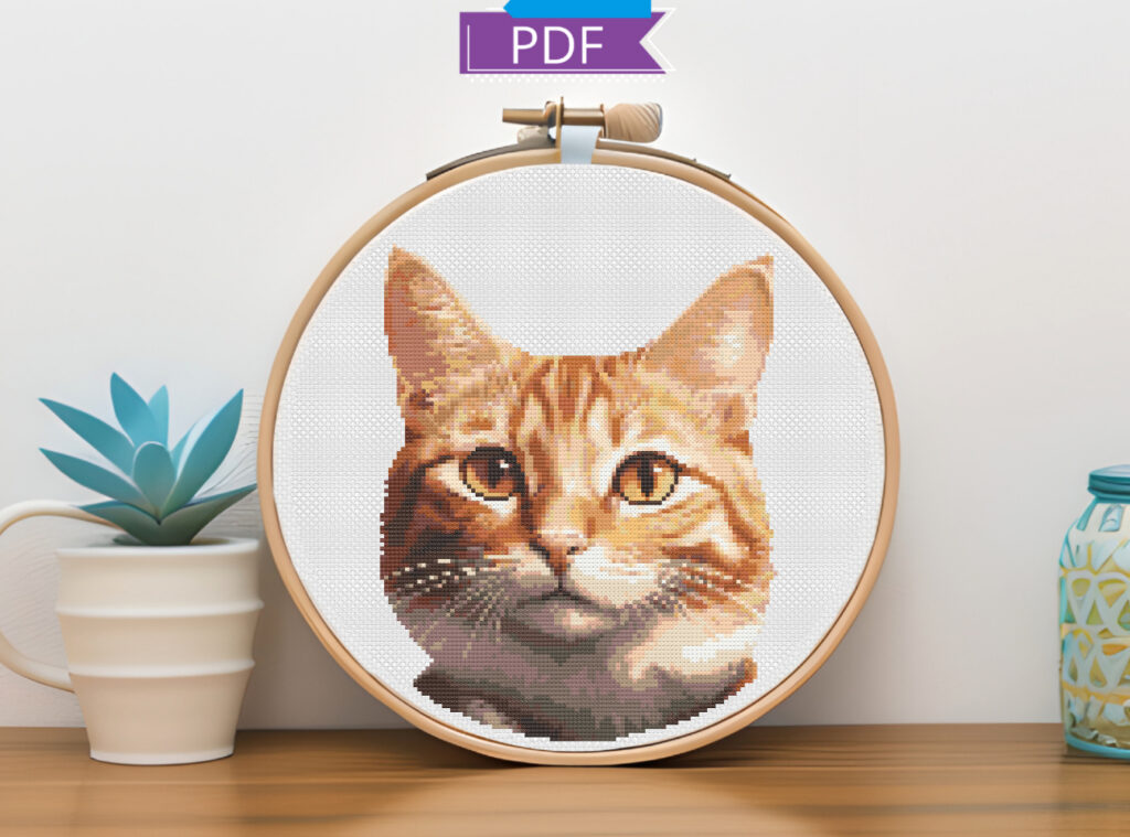 I’ve always had a soft spot for ginger cats (growing up with reddish hair!) and this cute ginger cat cross stitch pattern captures their beautiful inquisitive nature. Stitch one up as a gift for a cat lover, or to hang up as DIY wall decor.