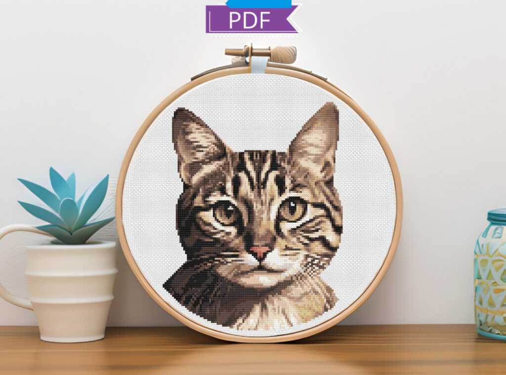 Get ready to unleash your creativity with this delightful tabby cat cross stitch pattern! With its charming stripes and serious expression, this feline friend is sure to add a touch of whimsy to your stitching adventures.